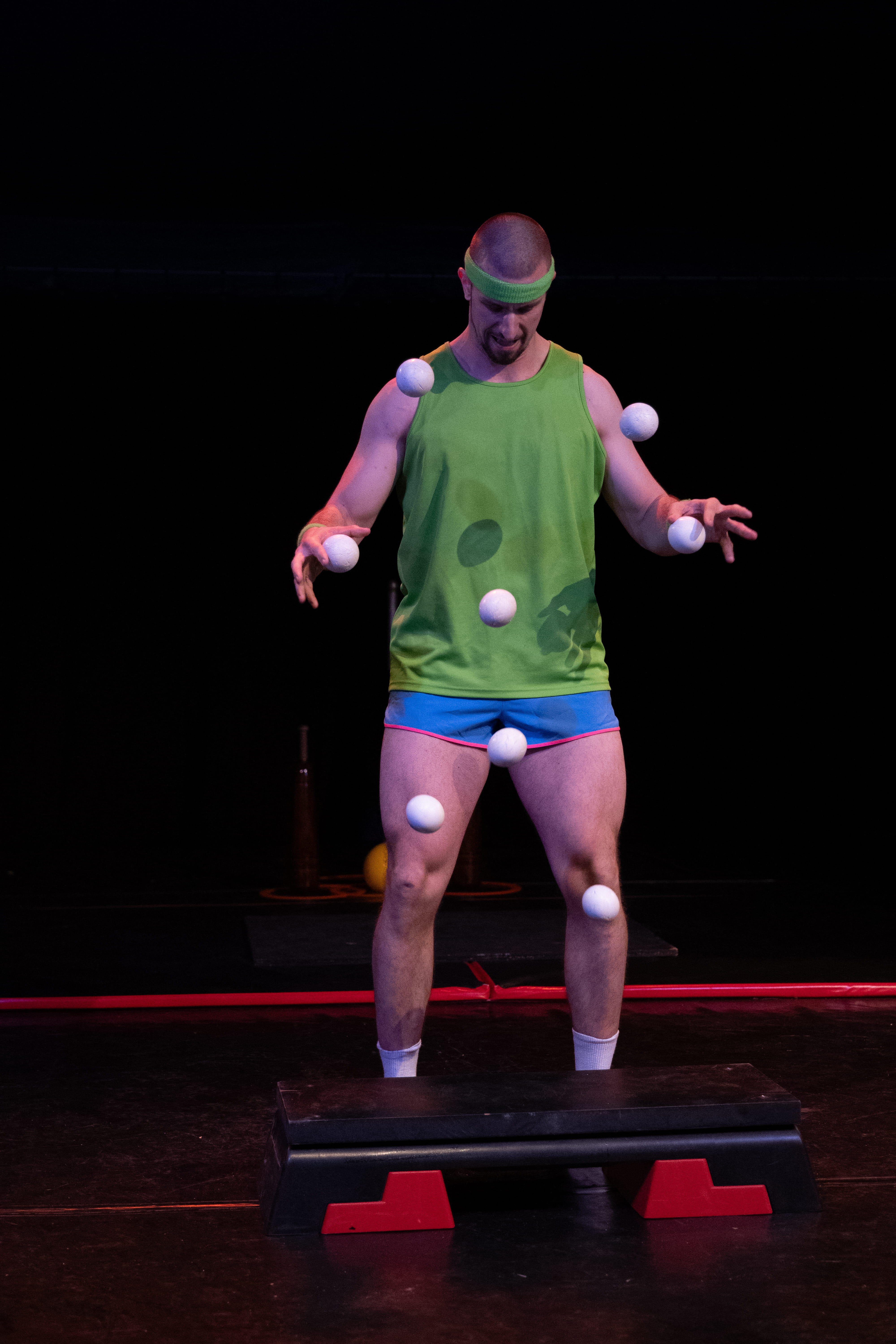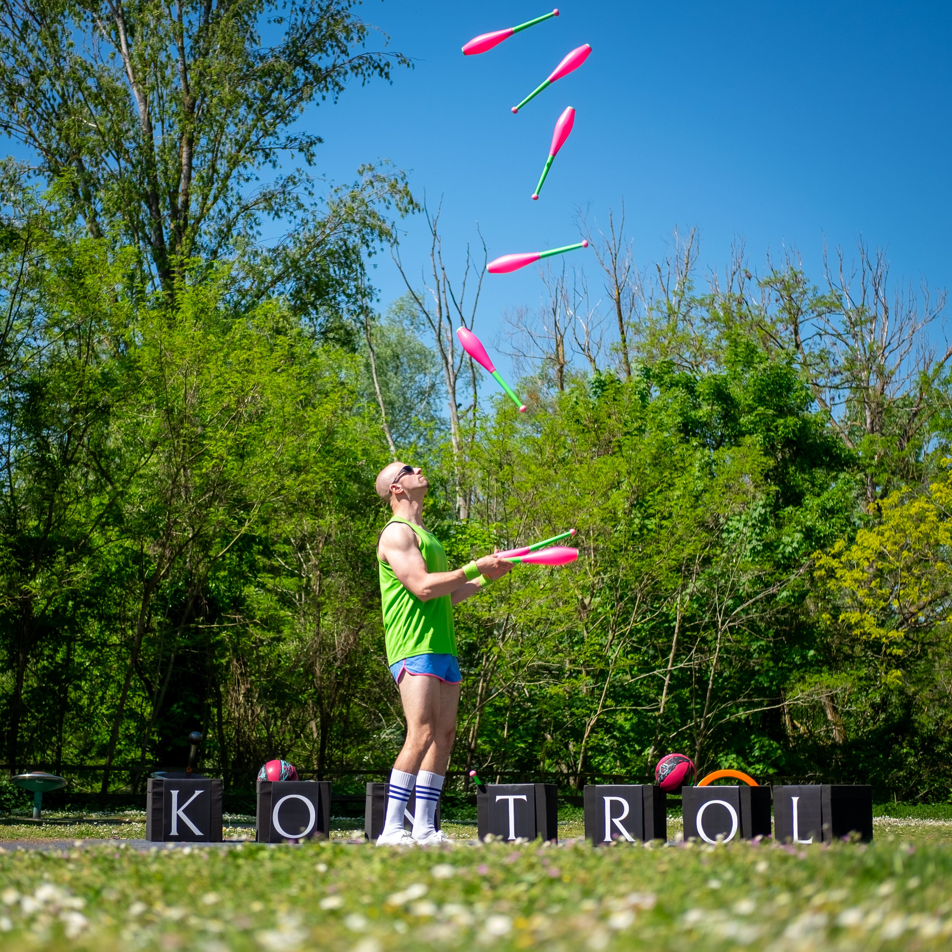 KONTROL expose le lien entre le jonglage et le sport, explorant tous les degrés de dépense physique jonglistique possible sur fond de questionnements liés au sport de haut niveau.