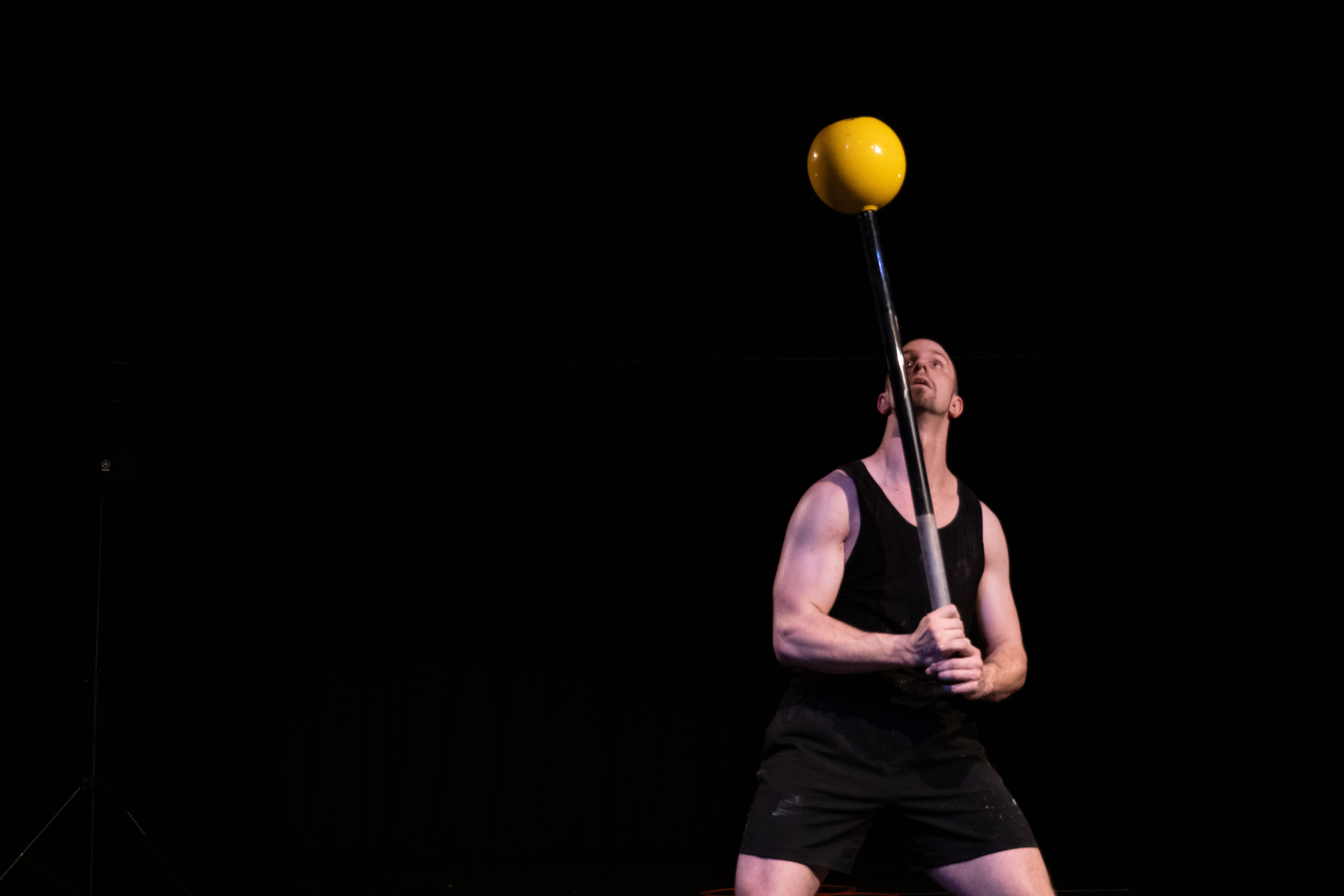 Dans une série d’épreuves sportives mêlant endurance, agilité, force brute et précision, un jongleur va repousser ses limites. Cherchant à aller toujours plus haut, avec plus d’objets, plus lourd, plus rapide, jusqu’à quand tiendra-t-il dans ce jeu sans fin ? Pourquoi ? Pour qui ?